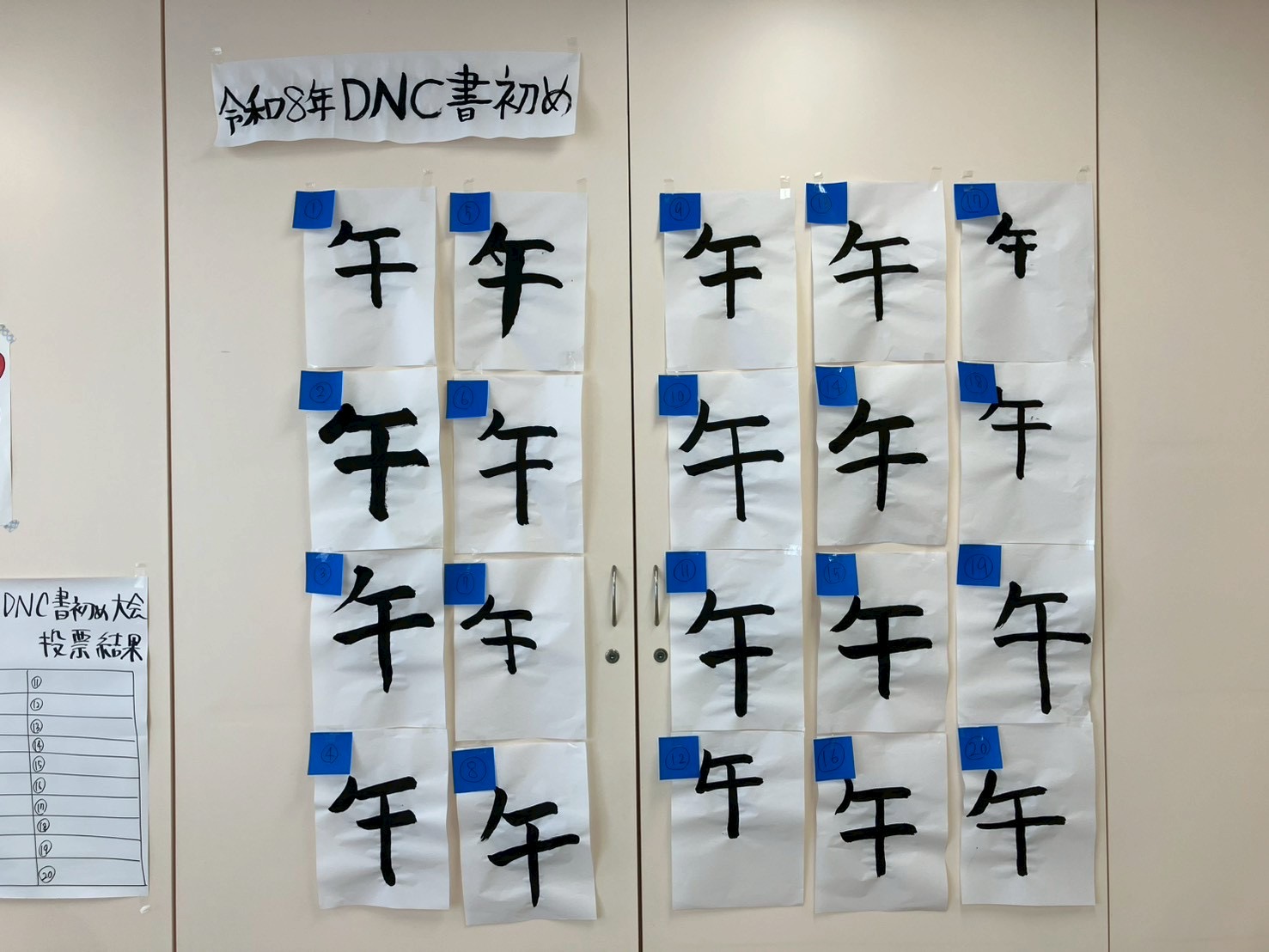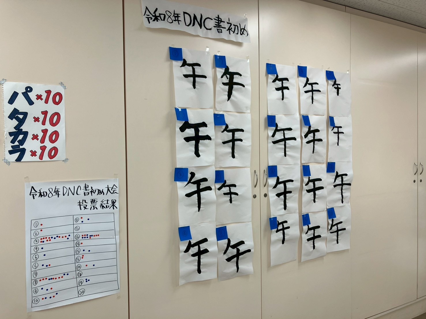 当日は患者様に1年の目標を筆やマジックを使って、漢字1字で書いていただきなぜ書いた1字にしたかを発表していただきました。患者様の中には悩んでなかなか紙に書くことができない方や紙が渡されたと同時に書き終える方や書きたい漢字が出て来ず他の方から聞いて書き上げる方と様々な方がいました。 |